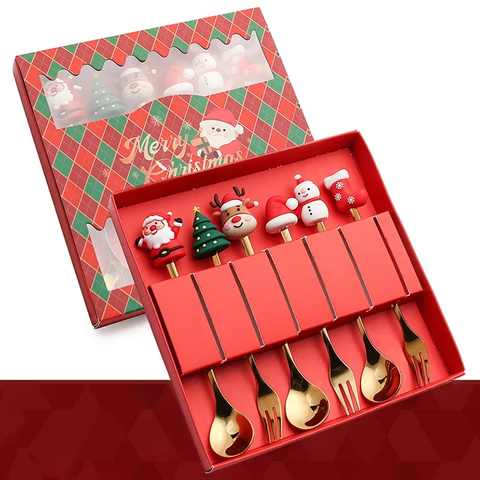ชุดช้อนส้อมสเตนเลสสตีลของขวัญคริสต์มาส2025ชุดช้อนและส้อมมีดดีไซน์ใหม่น่ารักคริสต์มาสช้อนและของขวัญคริสต์มาส